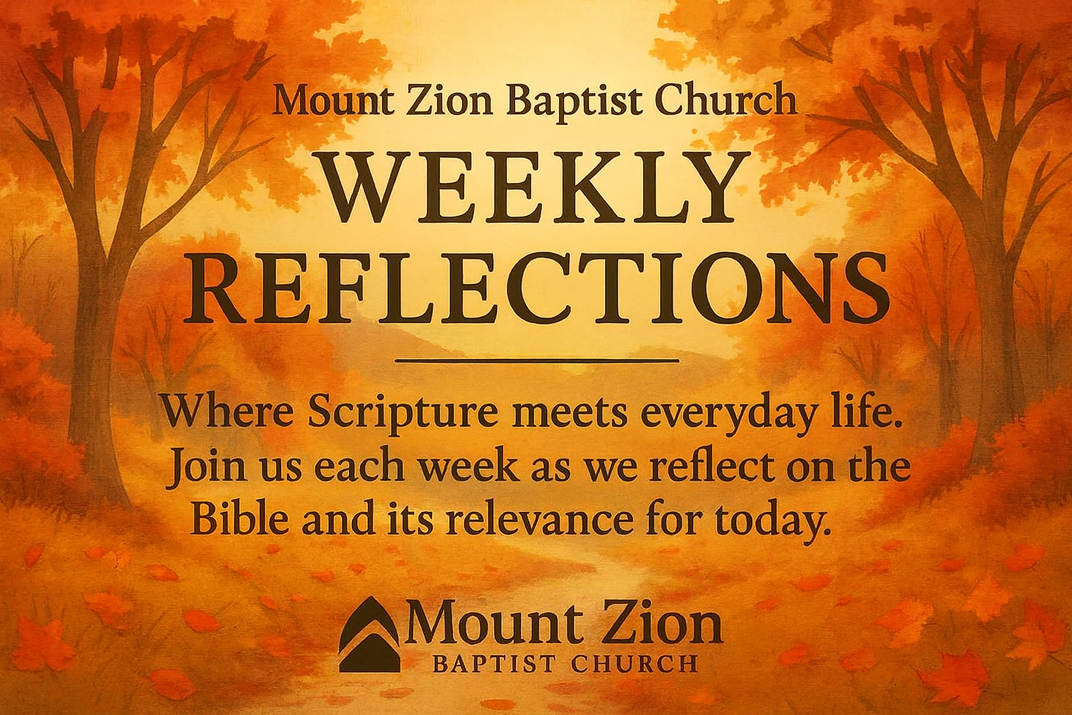 Join us this week as we explore the richness of God's Word and its relevance to our lives today. For more information, please visit the Mount Zion Baptist Church website or contact the church office.