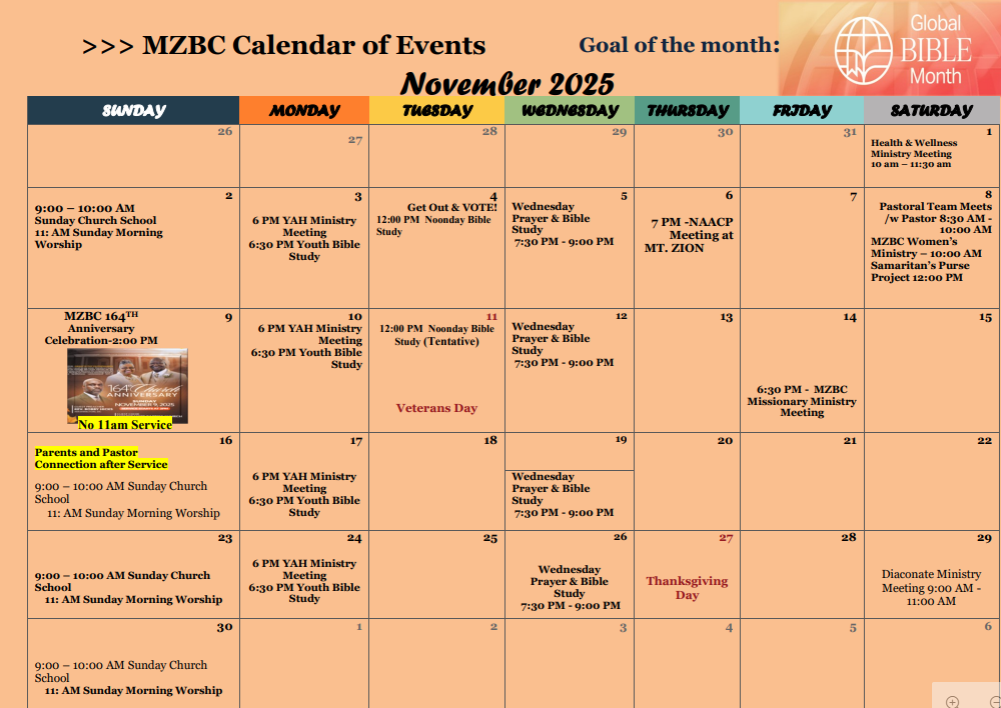 Join us as we honor a remarkable milestone in our church’s history! Mount Zion Baptist Church will celebrate its 164th Anniversary on Sunday, November 9, 2025, at 2:00 p.m. This is a time to reflect on God’s goodness and rejoice in His enduring promises.
