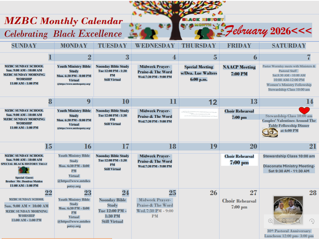 Each February, Mount Zion Baptist Church joins communities across the nation in celebrating Black History Month—a sacred time to honor the faith, resilience, and brilliance of African Americans whose stories continue to shape our world. For our church family, this month is more than a historical observance. It is a spiritual reminder of God’s faithfulness through generations and a call to continue the work of justice, unity, and love.