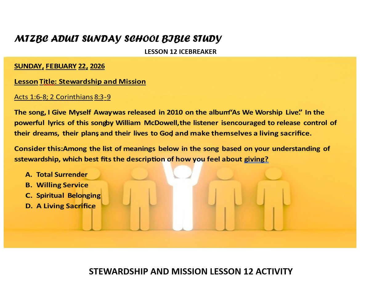 All MZBC members—whether you’re new to the faith, growing in stewardship, or seeking to refresh your understanding—are warmly invited. Bring your Bible, a notebook, and an open heart.